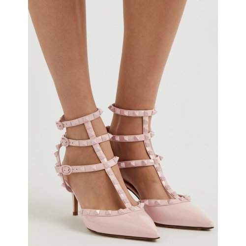 Signature Rockstud embellishments, T-bar straps, pointed toe
